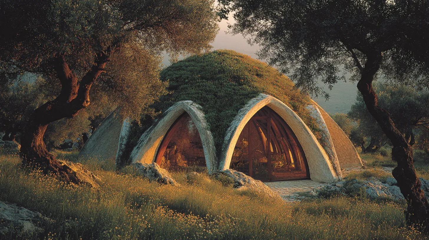Transform removed eucalyptus into a permanent, fire-resistant structure using natural materials—light straw-clay walls, living roof, zero concrete.